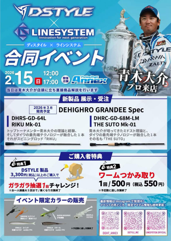 トップページ > EVENTイベント > 【フィッシングエイトアネックス 青木大介 LINESYSTEM×DSTYLE合同イベント開催】
