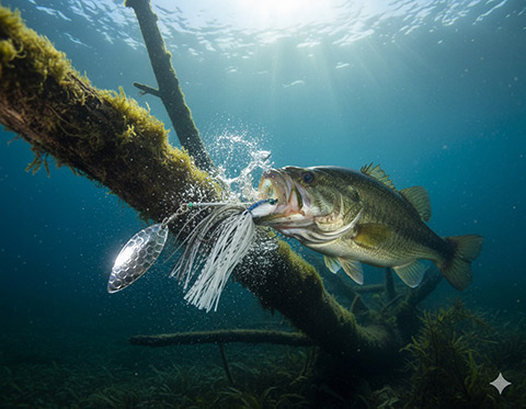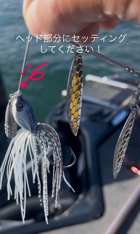 Dαスピナーベイトの ヘッドにシンカーを追加 して、レンジキープ&リアクション性能を高めるセッティング!