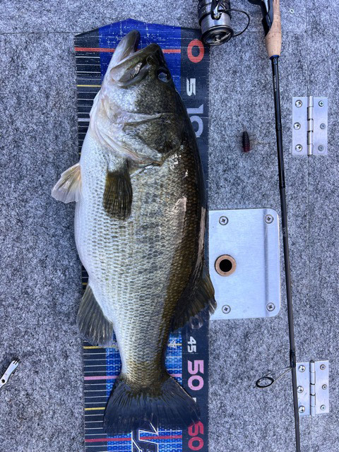 朝のフィーディングしてるタイミングに垂直岩盤ベタベタにヴィローラスイムベイト160をスローに巻くと丸見えバイトで50アップ!