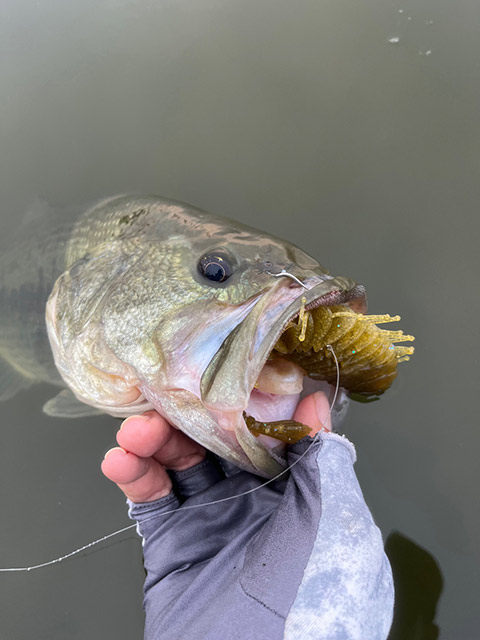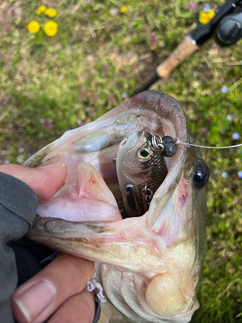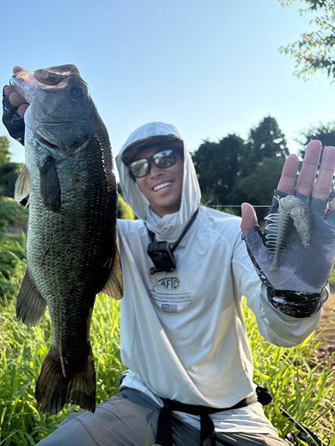 他にも沈むエラストマー素材をいかして、ノーシンカーでのサイトフィッシングや、リアクションダウンショットでもナイスバスをキャッチできてます!