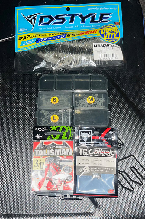 シンカーは狙うレンジによって使い分けてください。5gを使用すると表層〜50cmぐらいをゆっくりデロンデロンさせることができます。それより深いレンジを攻める時は7g以上という使い分けでOKです!
